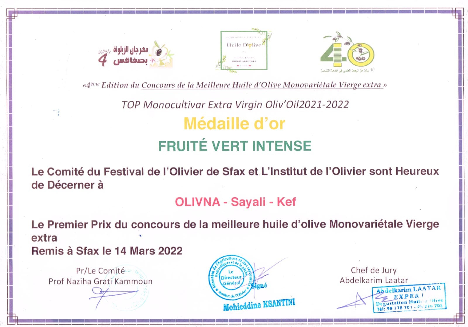 Gekrönt als bestes Olivenöl von Tunesien (drittgrösster Exporteur)
