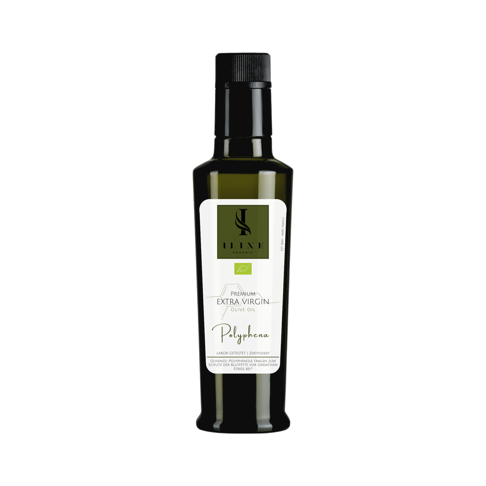 Unser native extra Polyphenol Olivenöl (bis 1200 mg/kg) wird aus handverlesenen Bergoliven geerntet, die in einer Höhe von 730 Metern über dem Meeresspiegel gedeihen.